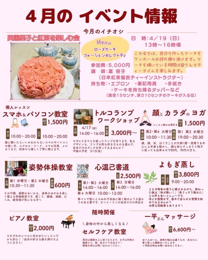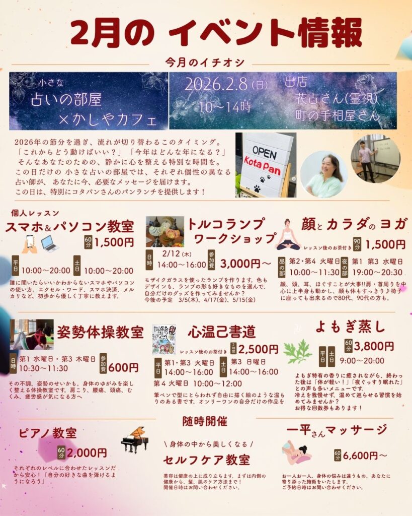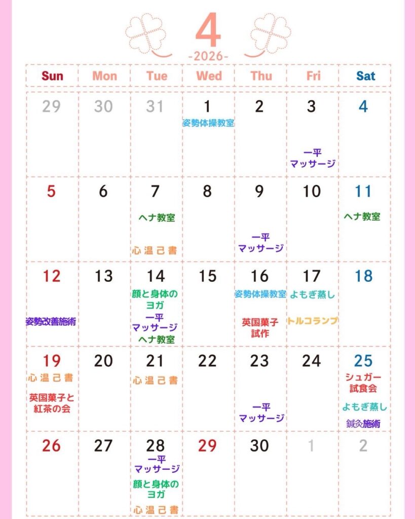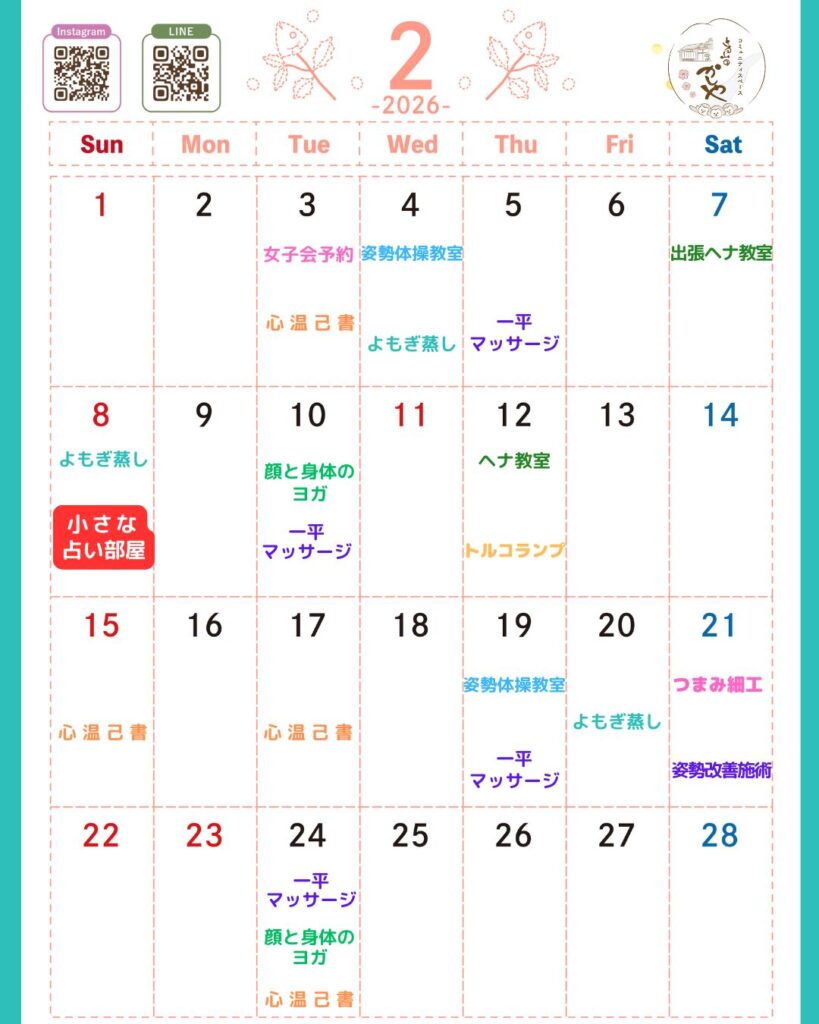よもぎ蒸し、占い、マッサージは、日程のリクエストをお願いします。